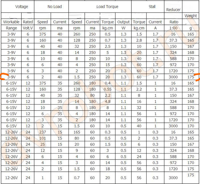 • Оптимальное питание 6В скорость 6 оборотов в минуту.