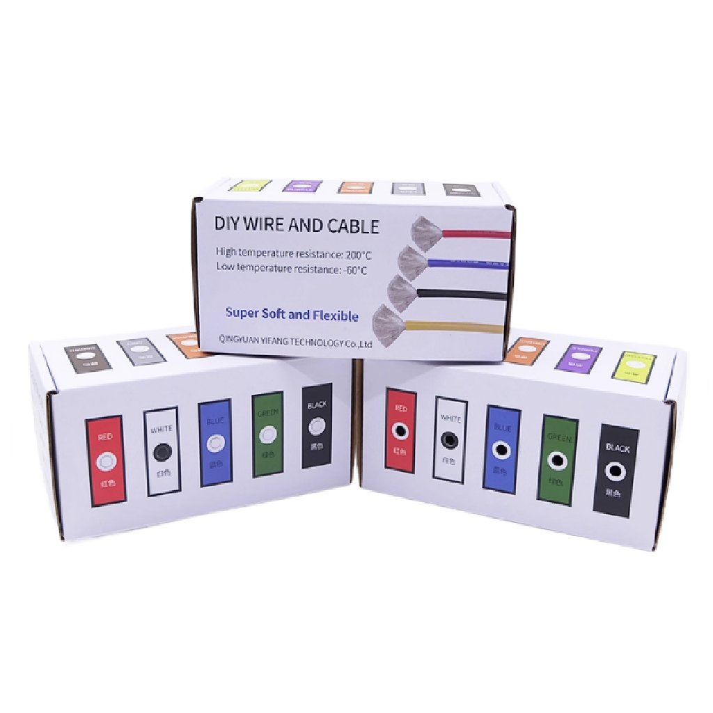В удобной коробке для хранения и использования находятся пять катушек проводов различных цветов по 10 метров в каждом. Цвета проводов в комплекте - ЧЁРНЫЙ, БЕЛЫЙ, КРАСНЫЙ, ЖЁЛТЫЙ и СИНИЙ.
