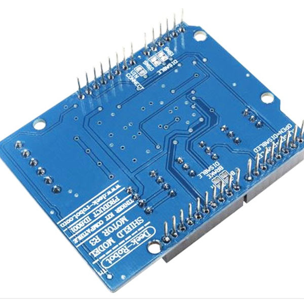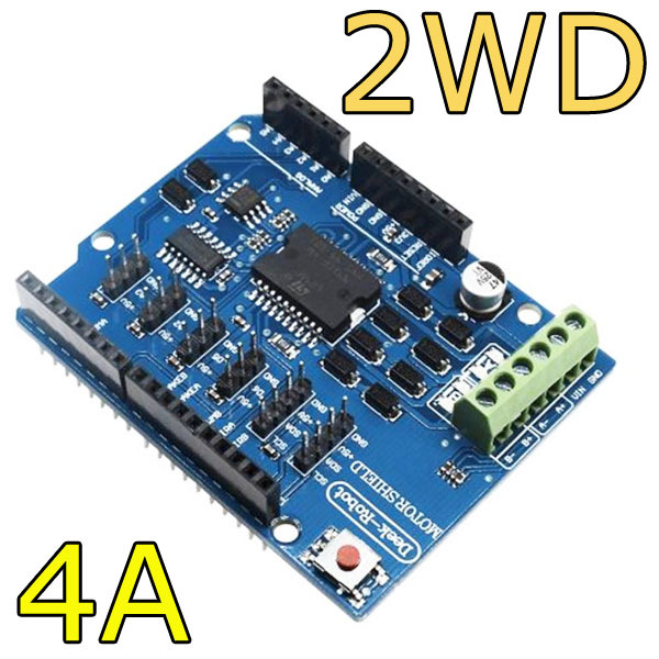 Драйвер щит на основе L298Р . Главное преимущество в том, что поверх данного щита можно использовать другой щит. Как следствие проект получается не громоздким и легким.