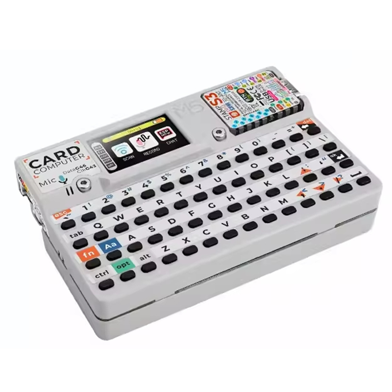 Карточный компьютер это карточный компьютер, подходящий для инженеров, использующий M5StampS3 в качестве основного контроллера.Что касается взаимодействия с управлением, он оснащен 56-кнопочной клавиатурой и 1,14-дюймовым TFT-экраном для взаимодействия с дисплеем.Кроме того, встроенный цифровой MEMS-микрофон SPM1423 может записывать или просыпаться, а также подключается к полостному динамику для воспроизведения звука.