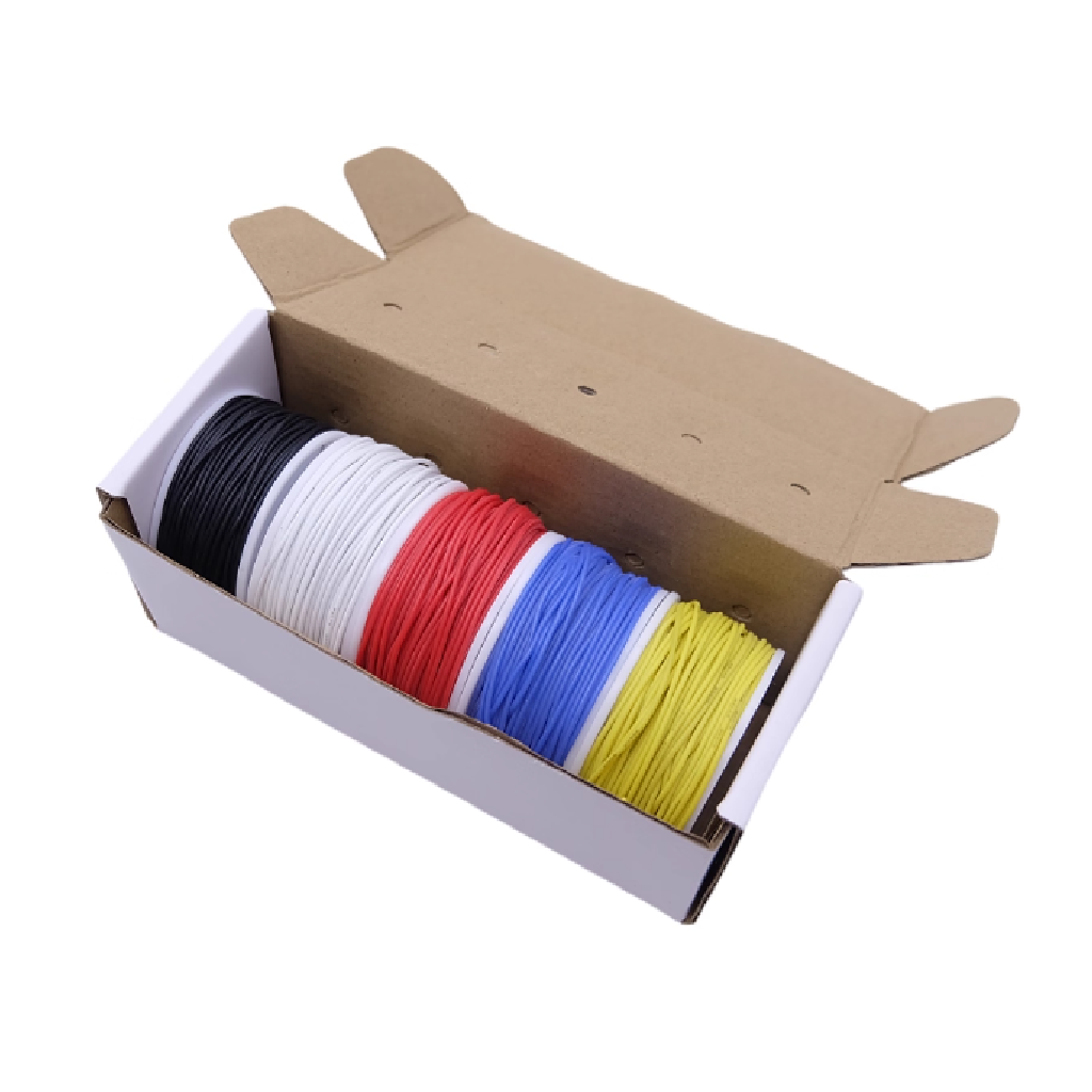 В удобной коробке для хранения и использования находятся пять катушек проводов различных цветов по 10 метров в каждом. Цвета проводов в комплекте - ЧЁРНЫЙ, БЕЛЫЙ, КРАСНЫЙ, ЖЁЛТЫЙ и СИНИЙ.